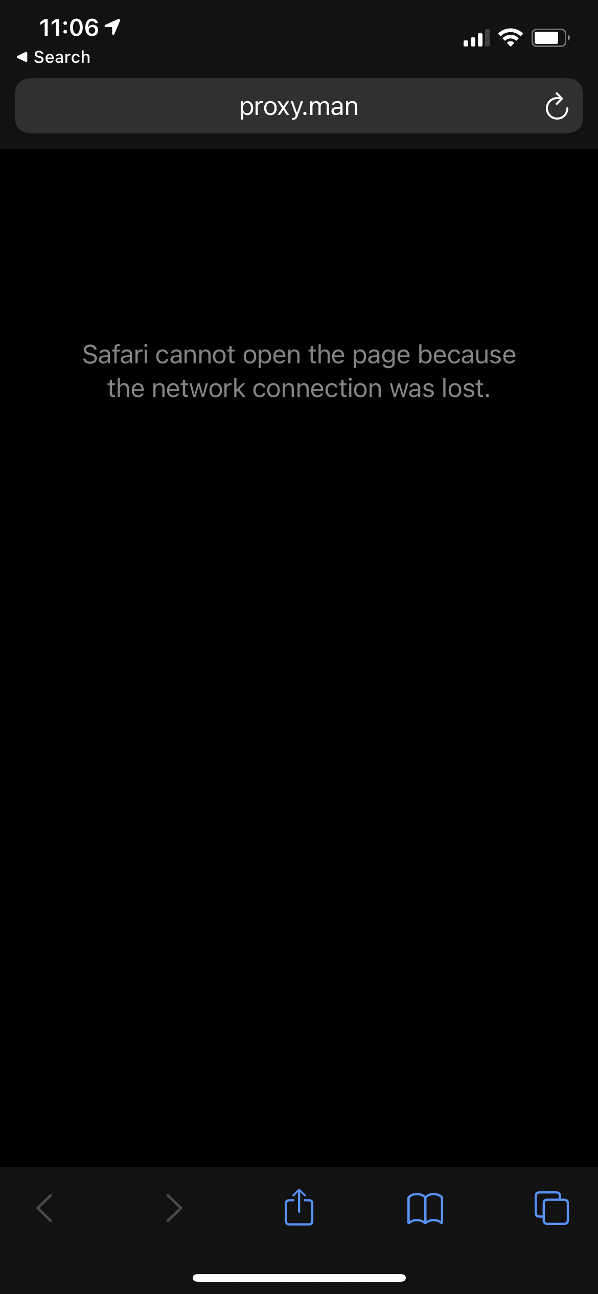 @parski Look like the problem is from the External Proxy. Can you temporarily disable it and try again (Open http://proxy.man/ssl on your iOS Devices) 🤔