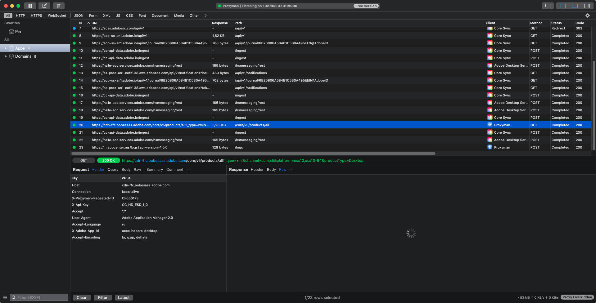 I noticed that Proxyman shows the response body for a very long time, if the response is an xml file of about 5 megabytes in size. This happens if you look at the server response data on the "Raw" tab and on the "Body" tab.