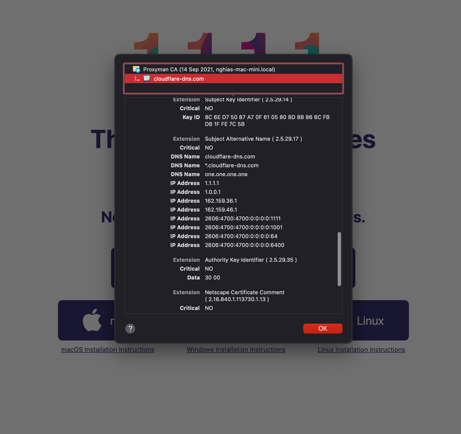 If we enable SSL Proxying on IP Address, such as https://1.1.1.1:443, we will get SSL Error and the big warning from Safari/Google Chrome.