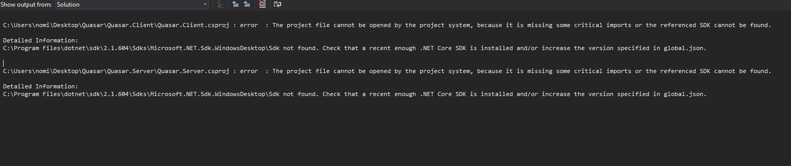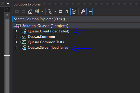 I'm trying to compile the solution but VS-17 doesn't load the Quasar.Client & Quasar.Server. Here is the screenshot