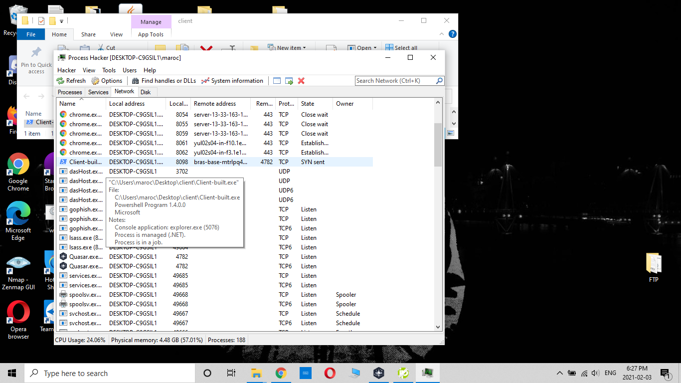 Can you confirm that client is trying to connect using ProcessHacker or other?