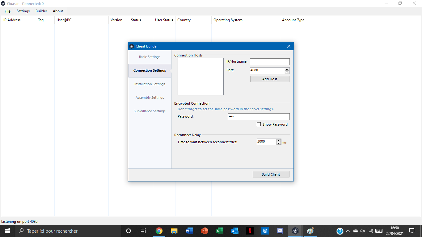 Hello I have a small problem I have tried several ip and other for the configuration of the exe file but when I generate it it is not the problem but when I run the file nothing is displayed in the table and I do not that's not how to go about it can you help me please thank you in advance