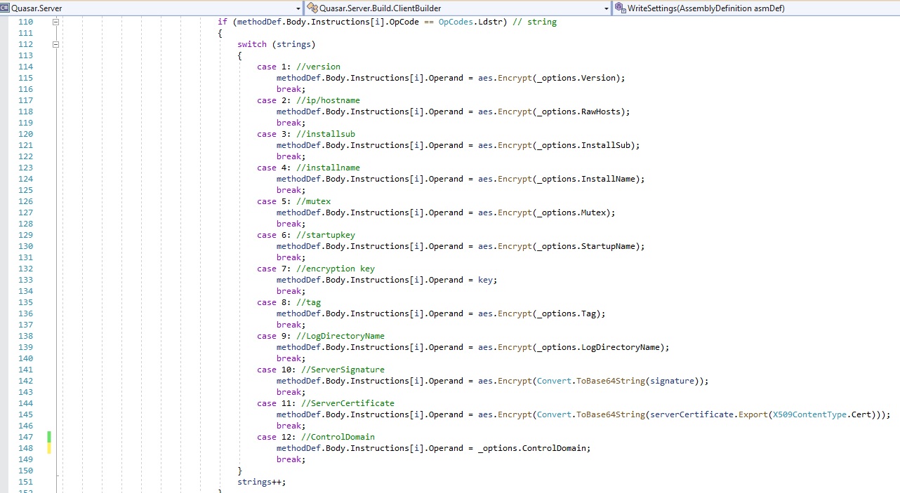 Sorry for opening an issue here but I am stuck on this problem for two days. I am trying add to new option to allow client to connect to a website. I have connected the client to website but the link of the website is hard coded in client at the moment. Now I want to add link of the website to profile builder so it can be changed when a new client is generated. The problem is I can't seem to figure out how Quasar\Server\Build\ClientBuilder.cs is injecting values Client.bin and how Quasar\Client\Config\Settings.cs is able to read them.