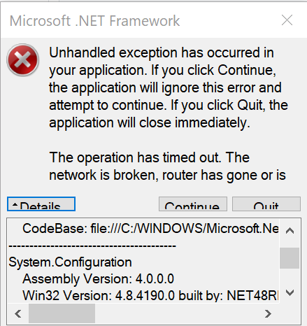 Does Quasar.exe throw this exception or the client?