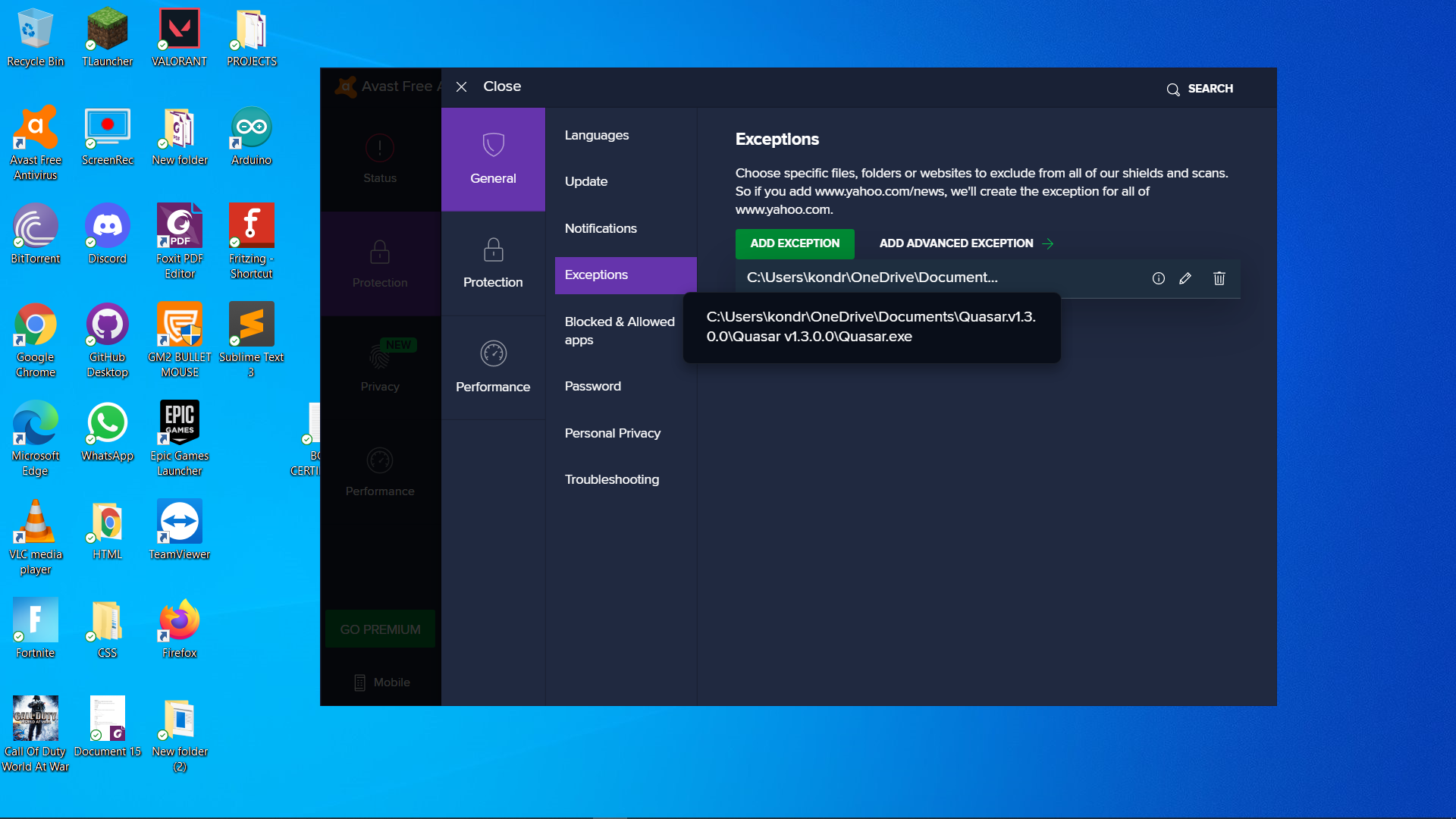 The "client" "exe" also needs to be in the list on the machine it is running on. Quasar.exe "Server" is what you use to control client pc.
