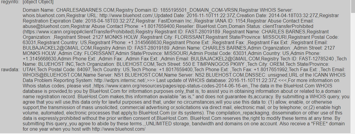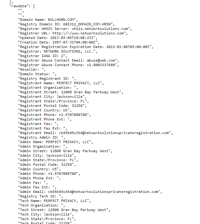 The raw data in a whois lookup is a to many object. Its not doing line breaks.