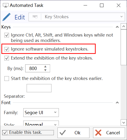 6dd0c31Add option to ignore software simulated keystrokes.f11f81dclear using statement.📊 Changes