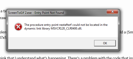 Screentogif stopped working today with some error of msvcr120_clr0400.dll