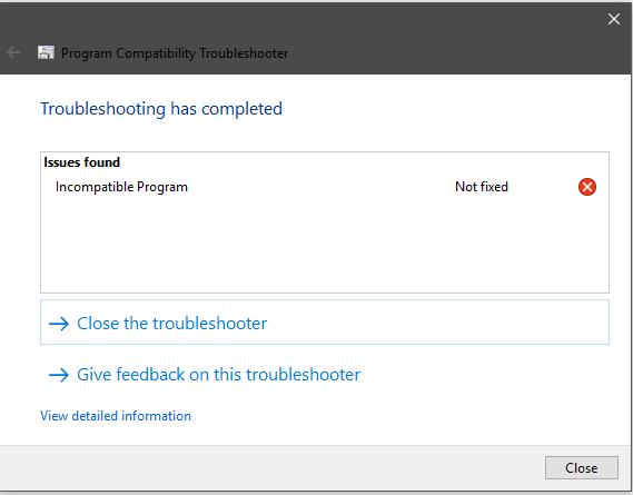 This is an upgrade to previous version not new install. Running the latest Windows 10 version 1803 build 17661.1001. The April 2018 final Redstone build on the Insider fast ring. After several failures rebooted and same error. Could need refactoring for Win 10 as this is the final before Redstone 5. Ran the Windows compatibility troubleshooter and returned incompatible program Attached error: