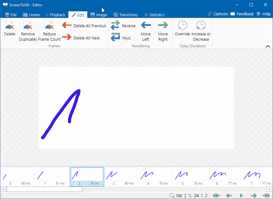 I created a recording with 24 frames, then I selected the third frame and clicked to "delete previous".