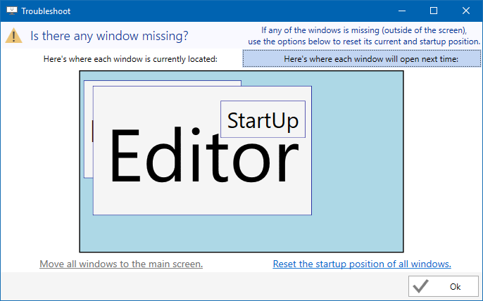 Then select the second option "Here's where your windows will open next time" and click to reset.