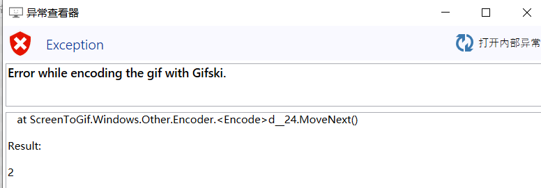 我只测试了它为什么gifski不工作,发现问题。出现错误,提示缺少vcruntime140.dll。安装vc ++ 2015-2019后,它在您的screentogif(v19和v20)中也可以使用