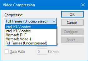 I tested creating an uncompressed video and a video using the Intel IYUV compressor and both worked normally, just the file size was big.
