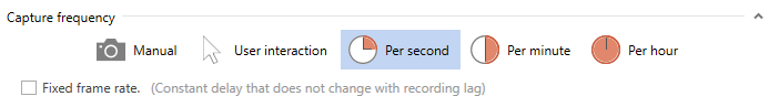 I want to record 1 frame every 30s... at present I use 1fps and then the other utility to remove X frames after each frame to thin the data (I have other issues with this I will document).