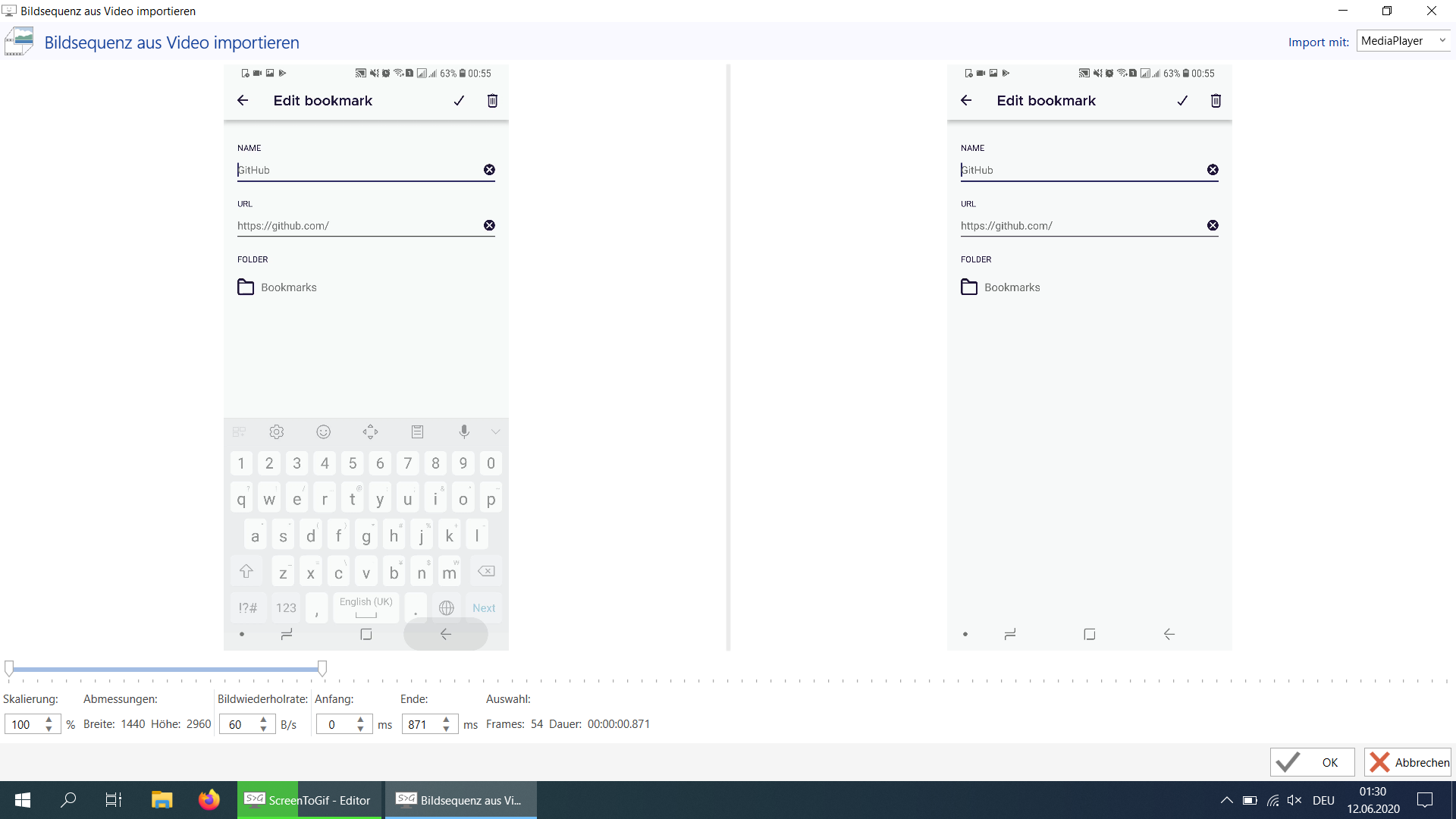 "Import frames from video" window opens up