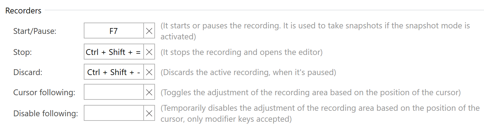 Ctrl+Alt+-forDiscardandCtrl+Alt+=forStop, but couldn't set them successfully.For what it's worth,
