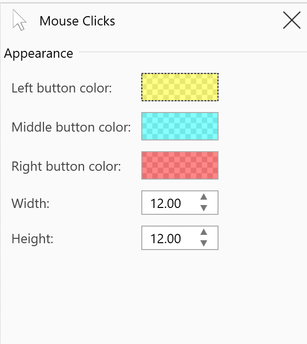 @claudiojs You can either set the colors directly when you add mouse clicks in the Editor via Image -> Mouse clicks. On the side panel you have the ability to pick colors.