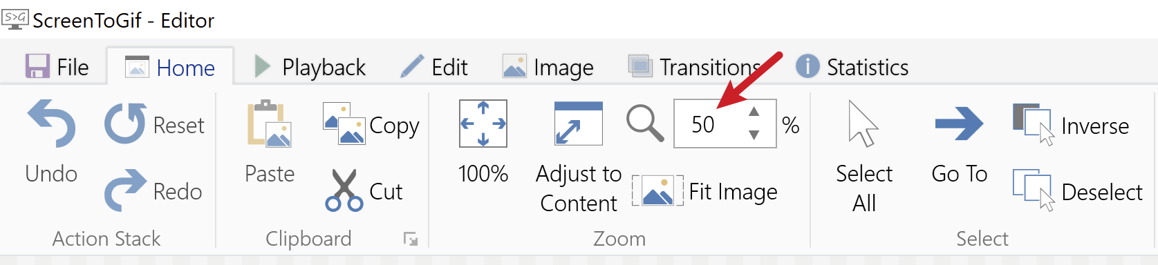 I'd like the capability to make the GIF smaller, so it look better. I tried the ZOOM functionality on the HOME tab, seems like it is only to do with the UI effect on ScreenToGif, won't affect the generated GIF itself.