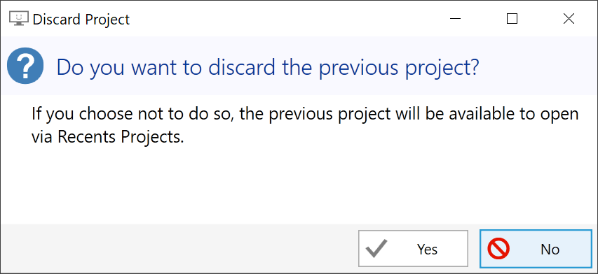If you record a new project while a previous one was not saved, you will get a "Do you want to discard the previous project?" dialog. Usually, such dialogs show a "Do you want to save the modified project?" confirmation, so it is necessary to read the message and not just click one of the buttons