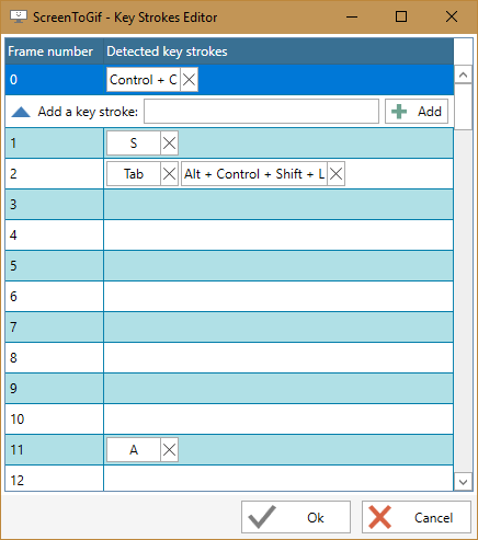 Is there an option to apply keystrokes only to some frames? It would be nice if you could remove the keystrokes where you type too much text, and leave only frames that contains ENTER, SHIFT+KEY, TAB, and others.