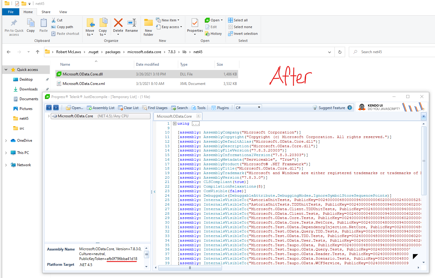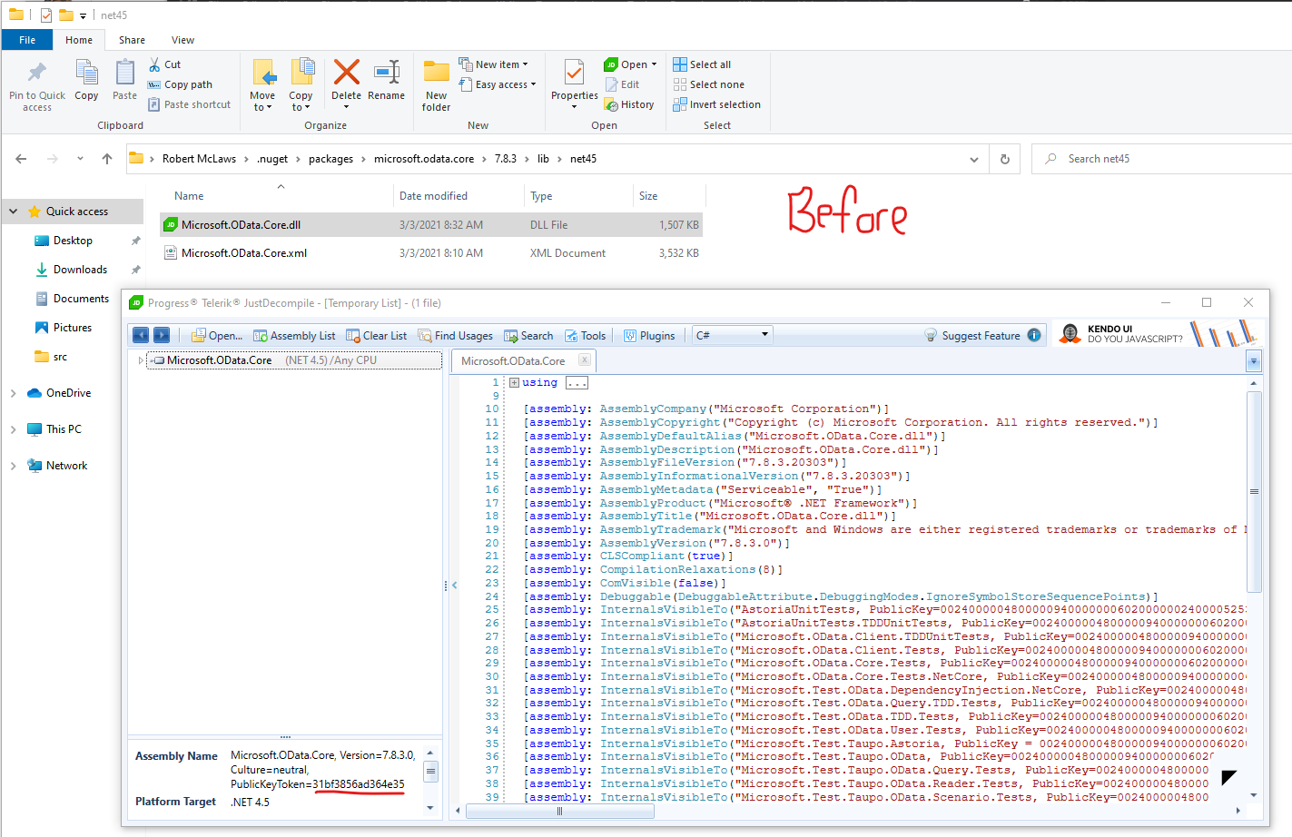 This is the Microsoft.OData.Core binary in the NuGet package cache BEFORE compiling my project with SNS: