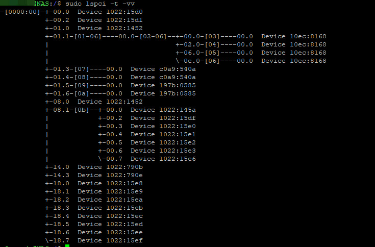 sudo lspci -t -vvand some screenshots of my NAS in case it's helpful.