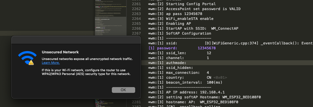 However, from now on every further requested "onDemandAP" (even after a reboot of the ESP) will be established with an insecure connection although a secure connection should actually be established.