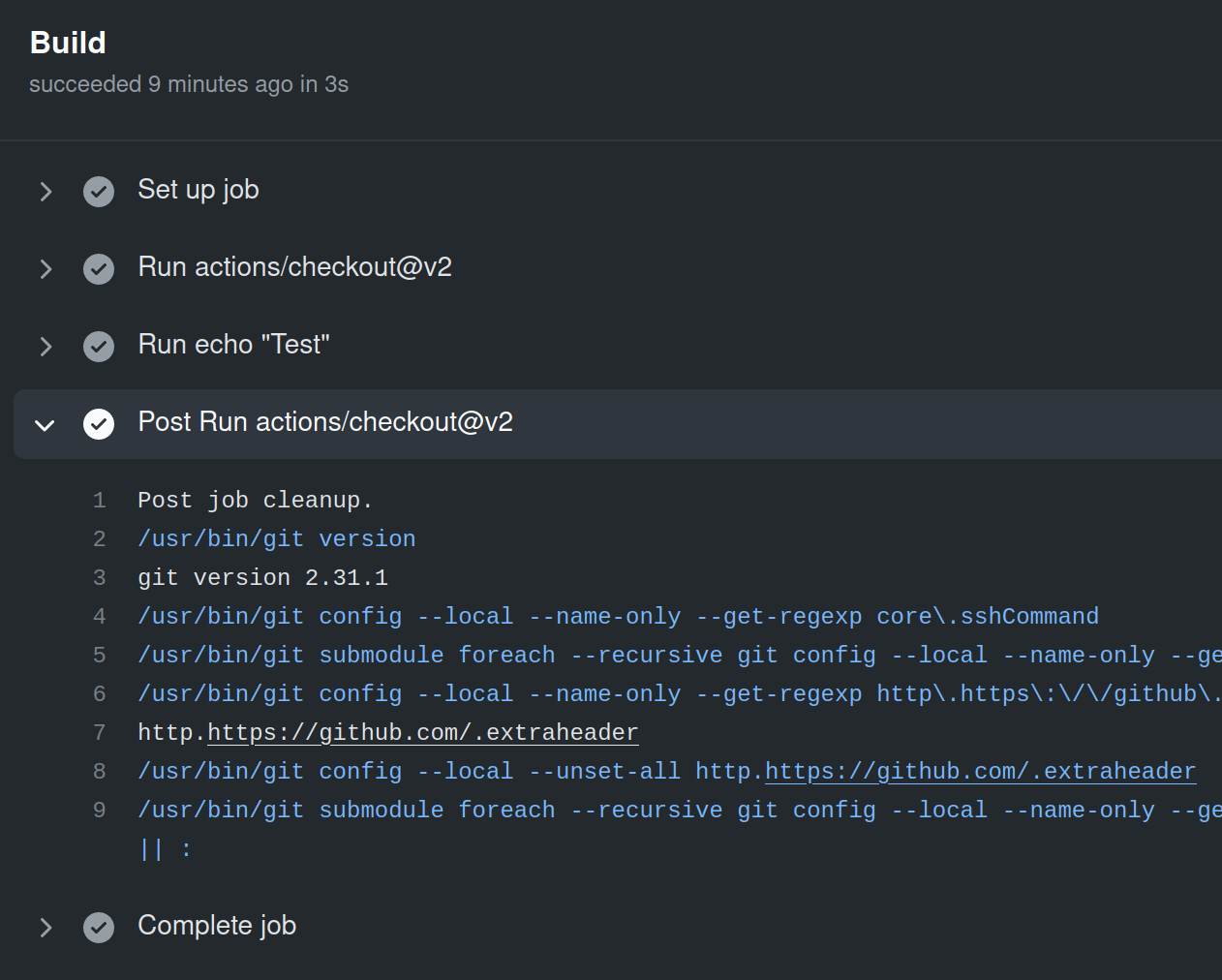 actions/checkoutit should say things like "Post job cleanup.", as can be seen here and in the screenshot:For the example here (using
