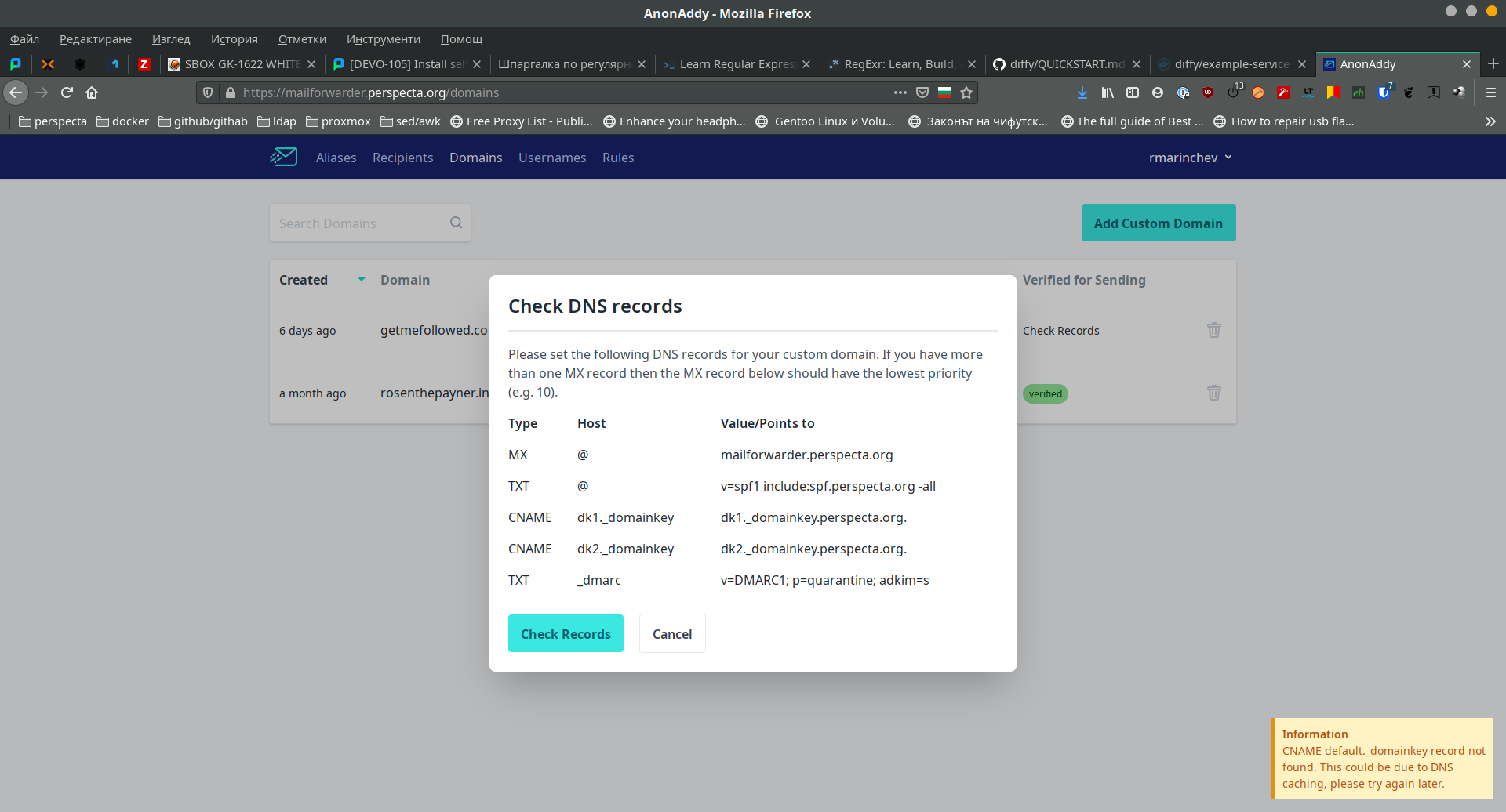 I have some issues while adding new domain, it fails with DNS records. But i cannot catch where it is.