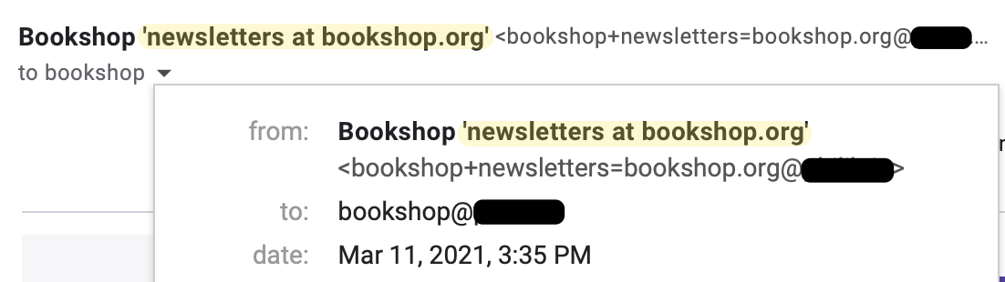 I'd prefer the contact's name was simply "Bookshop". This happens with all my aliases in Gmail and HEY, so I'm assuming that sender name formatting is coming from AnonAddy. (is this where that happens?)