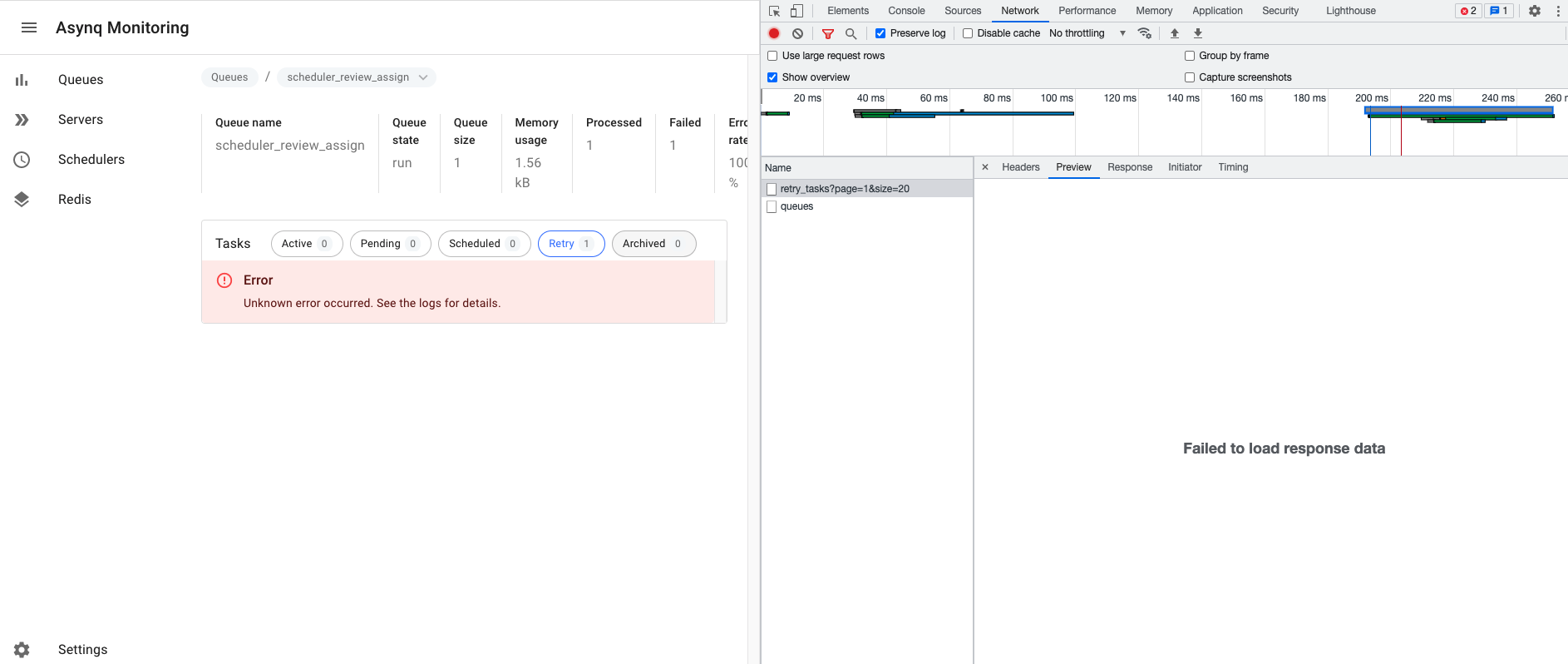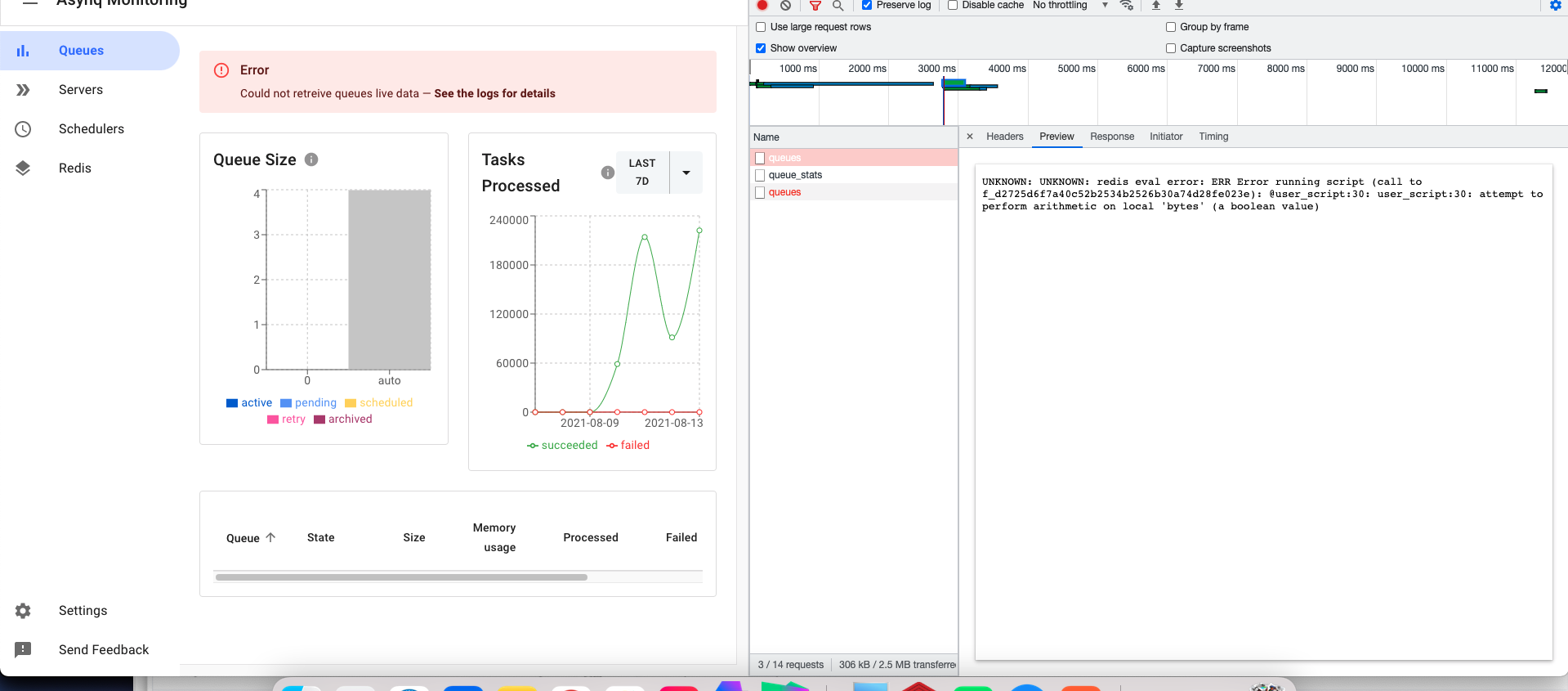 Upgrade asynq v0.18.3, check the queue details, the following error occurred