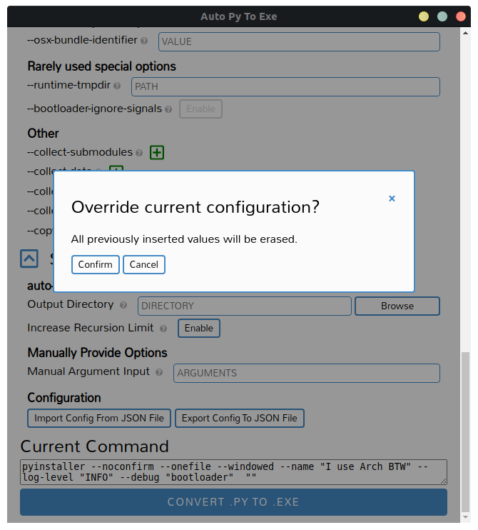 [PR #168] [MERGED] [Feature] Confirmation dialog on overriding configuration values on import #429