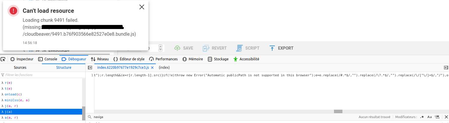 (missing: http://mysite/cloudbeaver/9491.b76f903566e82527e0e8.bundle.js)"