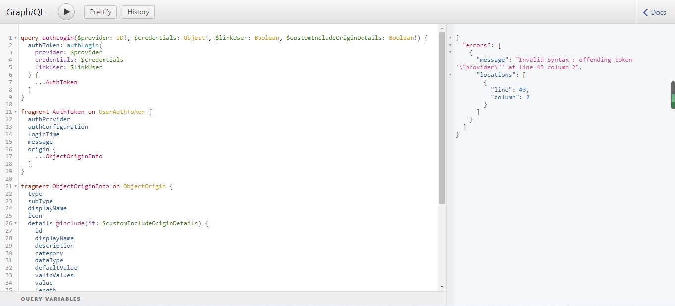 { "errors": [ { "message": "Validation error of type FieldUndefined: Field 'authProvider' in type 'AuthInfo' is undefined @ 'authLogin/authProvider'", "locations": [ { "line": 8, "column": 5 } ] } ] }@DanHartman commented on GitHub (Apr 11, 2023):