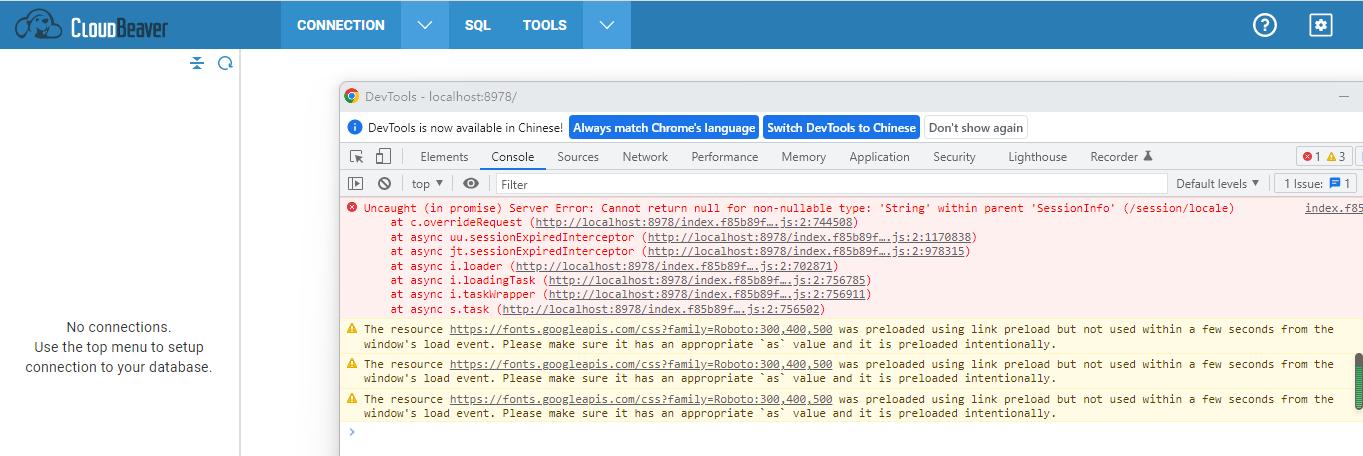 Uncaught (in promise) Server Error: Cannot return null for non-nullable type: 'String' within parent 'SessionInfo' (/session/locale)