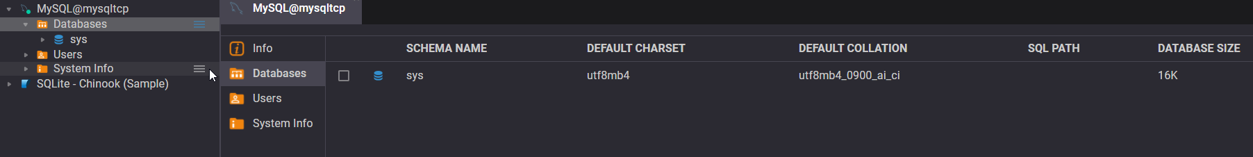 But with this connection it does not change anything: I still only see the sys database.