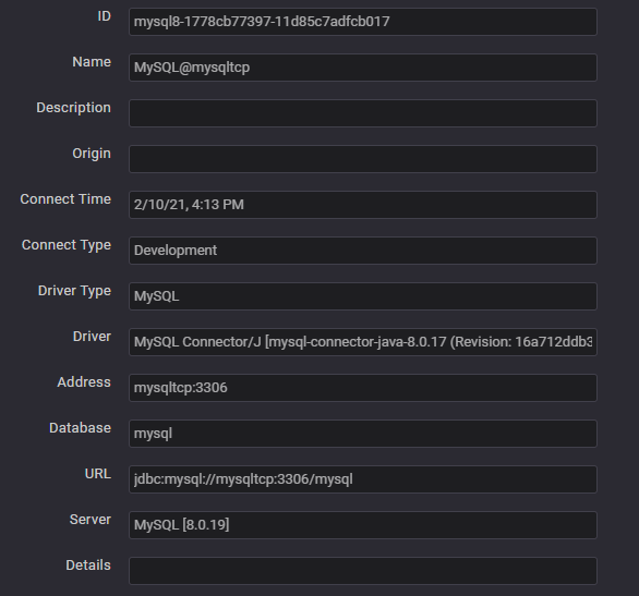 Access a mysql database (v8) with root user.