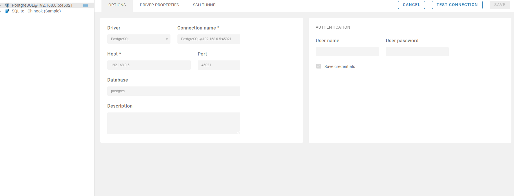 Edit connection allows to edit connections which are created on the main page (Connection>Manual/From Template).