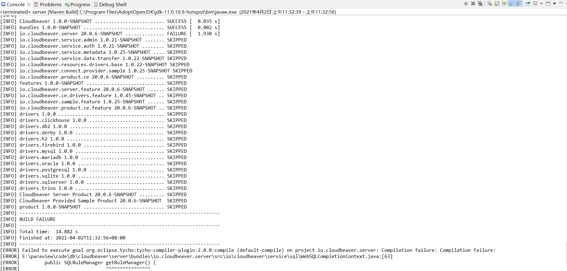 HI,I'm attemp build cloudbeaver in eclipse,but that appear errors below: