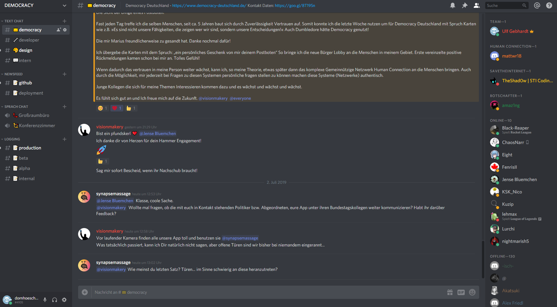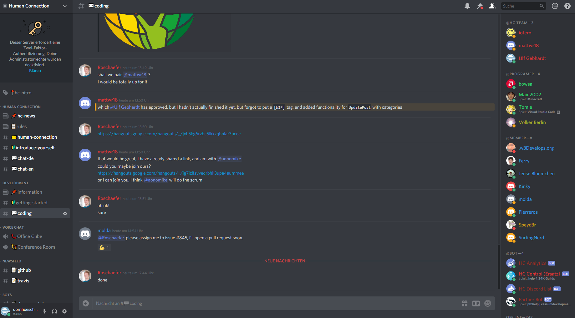 I'm not convinced that switching to / adding yet another closed source chat silo (discourse) is the best idea (for an open source project).