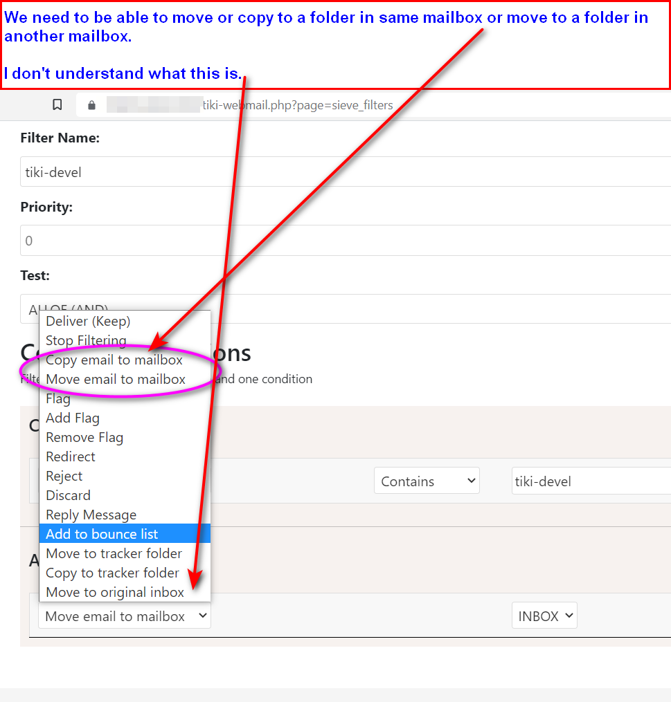avelsieveis crazy complicated (but seems really comprehensive). I think Cypht should stay with the "limited use case" approach.Namely define precisely ~7 most common use cases for which templates/one-click filter setup/form should exist and then a "convert to code" button which would irreversibly bring you to a plain text editor (perhaps with syntax highlighting if that is your thing) where you would get real-time feedback (any errors/warnings taken directly from the backend Sieve engine with no changes to them unless security issues would arise in which case the relevant parts should be substituted with random data/anonymized and a separate note about this should be appended) from the server after each keystroke.