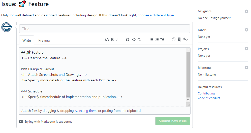 Implements the Github PR & Issue structure for better Issues and this PullRequest Template.