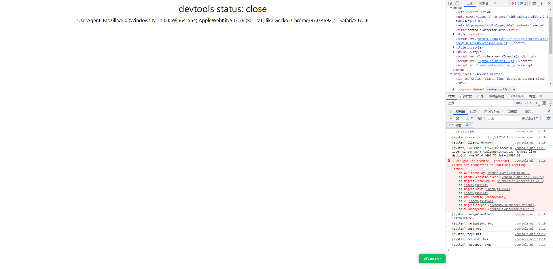 将Tencent/vConsole置于devtools-detector前加载会导致判断失效