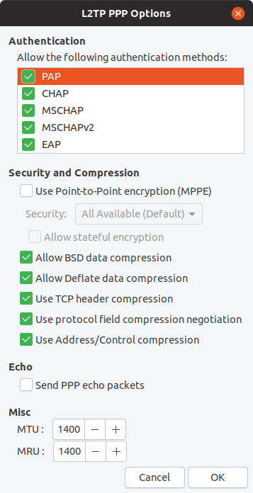 i am trying to connect from ubuntu 18.10 to the vpn server running on debian strech
