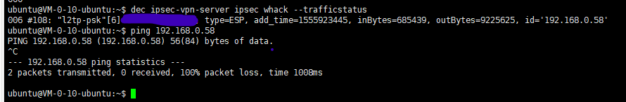 route tables:The following is the server's IPsec status: