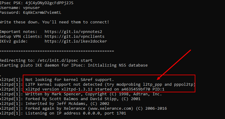 @johnwmail Hello! This Docker image does not yet support Windows Docker desktop/WSL2. The L2TP kernel support message from your screenshot is normal, however. L2TP kernel support is not required for the VPN to work.