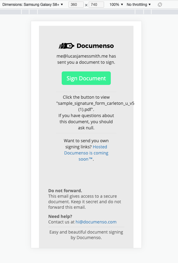 Currently the signing email displays poorly on small devices with the line wrapping causing the button to look broken.