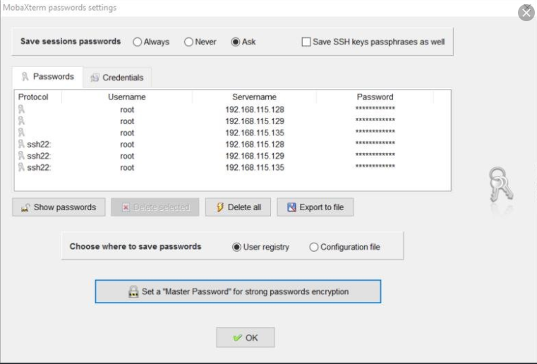 类似Mobaxterm的密码管理功能: