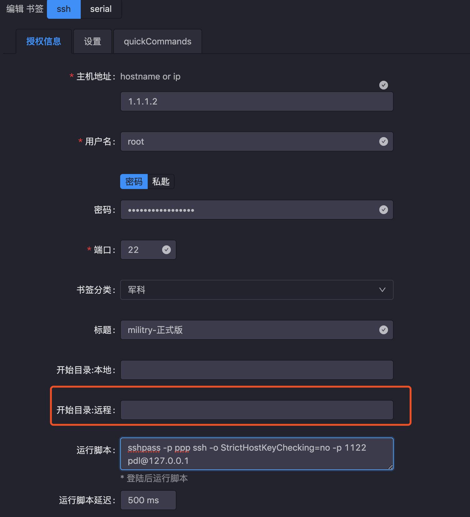 开始远程目录:远程是在进入第一层服务器成功后,开始执行的cd xx命令。如果是为docker容器的话,好像没链接docker前,通过cd 命令是进不去容器的。