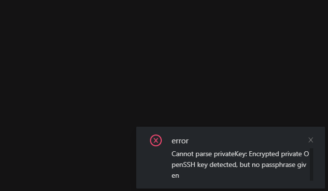 Cannot parse privateKey: Encrypted private OpenSSH key detected, but no passphrase given